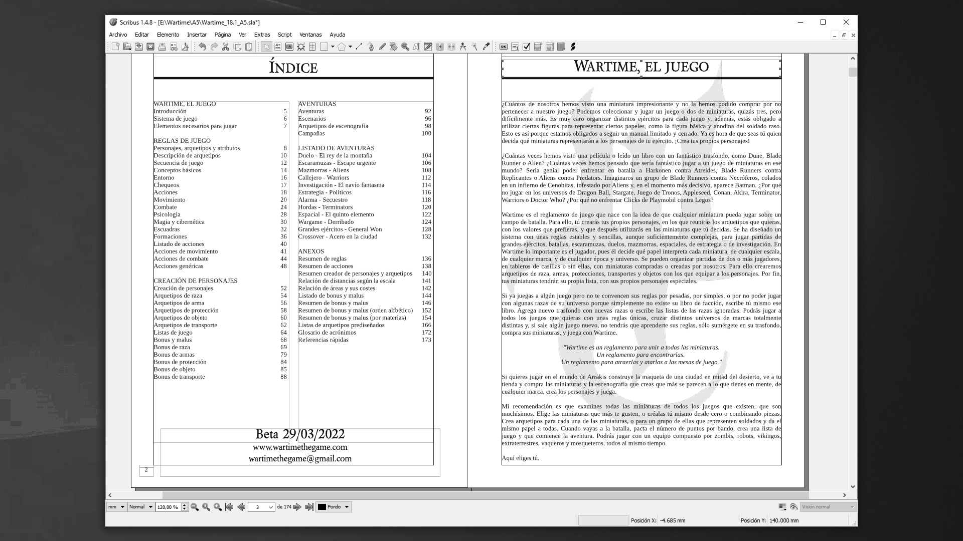El juego está vivo y creciendo y renovándose con cada partida. Siempre voy a los eventos de miniaturas con más público, como son las Freak Wars en Madrid y las Hispania Wargames en Alhaurín de la Torre. Allí podréis probar el juego. También suelo visitar distintos clubs de juegos de minis para probar Wartime. Contáctame por correo y planeamos una demo.